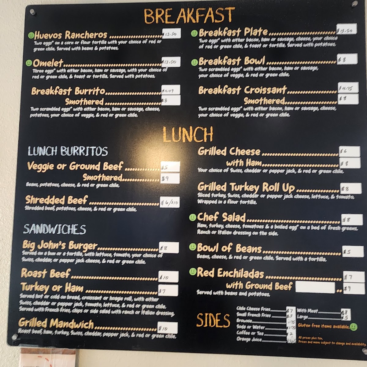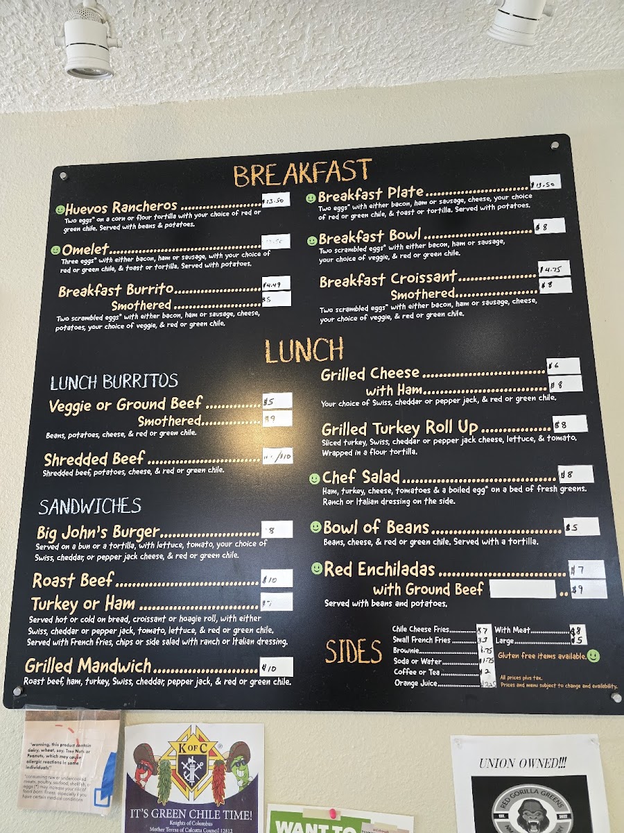 Served hot or cold on bread, croissant or hoagie roll, with either Swiss, cheddar, or pepper jack cheese, tomato, lettuce, and red or green chile. Served with french fries, chips, or side salad with ranch or Italian dressing.